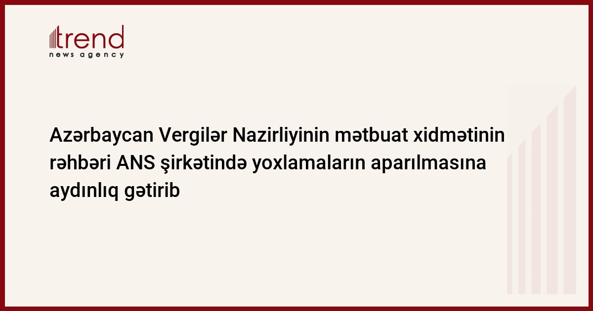 Azərbaycan Vergilər Nazirliyinin mətbuat xidmətinin rəhbəri Fariz Səmədov ANS şirkətində yoxlamaların aparılmasına aydınlıq gətirib.
