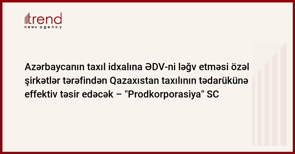 Qazaxıstanın milli taxıl şirkəti "Prodkorporasiya" SC 2010-cu ilin sonunadək və 2011-ci il ərzində Qazaxıstan daxilində ərzaq tədarükünün təmini, un və çörəyin qiymətinin stabilləşməsi üzrə öhdəliklərin yerinə yetirilməsi səbəbindən Azərbaycana taxıl ixrac etməyi planlaşdırmır.