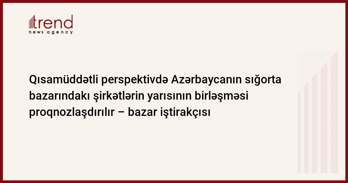 Yaxın iki-üç ildə Azərbaycanda yerli sığorta şirkətlərinin 50 faizi öz bizneslərini birləşdirməli olacaqlar. "Günay Sığorta" şirkətinin idarə heyəti sədrinin səlahiyyətlərini yerinə yetirən Vüqar Rəcəbov bu fikirdədir.