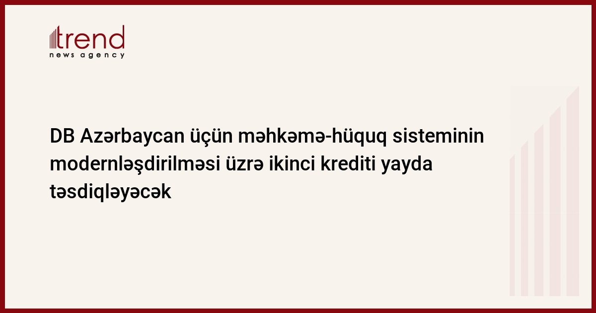Azərbaycanda məhkəmə-hüquq sisteminin modernləşdirilməsi layihəsinin reallaşdırılması gedişinin icmalının aparılması üçün martın 28-dən Dünya Bankının (DB) missiyasının Bakıya səfəri başlayır. Missiyaya layihənin rəhbəri Klaus Dekker rəhbərlik edir. Bu barədə bazar ertəsi DB-nin Bakı nümayəndəliyindən məlumat verilib.