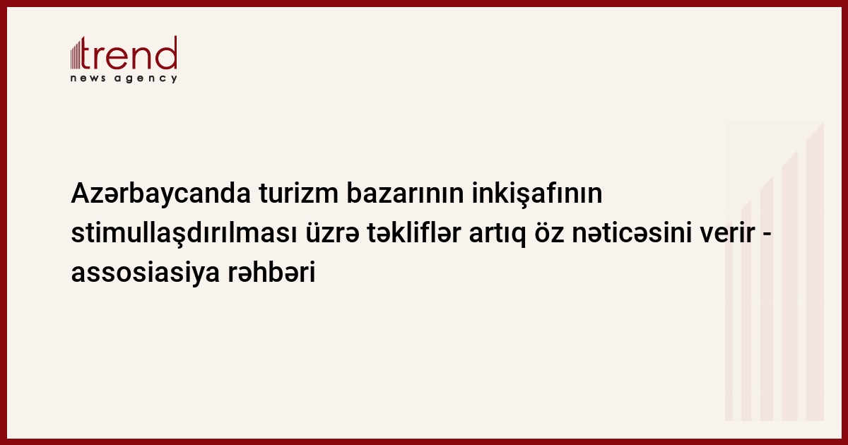 Azərbaycan Turizm Assosiasiyası ölkənin turizm bazarının inkişafının stimullaşdırılması məqsədilə mövcud qanunvericiliyə düzəlişləri hazırlamaq üçün Mədəniyyət və Turizm Nazirliyinə bir sıra təkliflər göndərib. Bu təkliflərə baxılır və onlar öz nəticələrini verməyə başlayır. Bu barədə çərşənbə günü Trend-ə assosiasiyanın rəhbəri Nahid Bağırov məlumat verib.