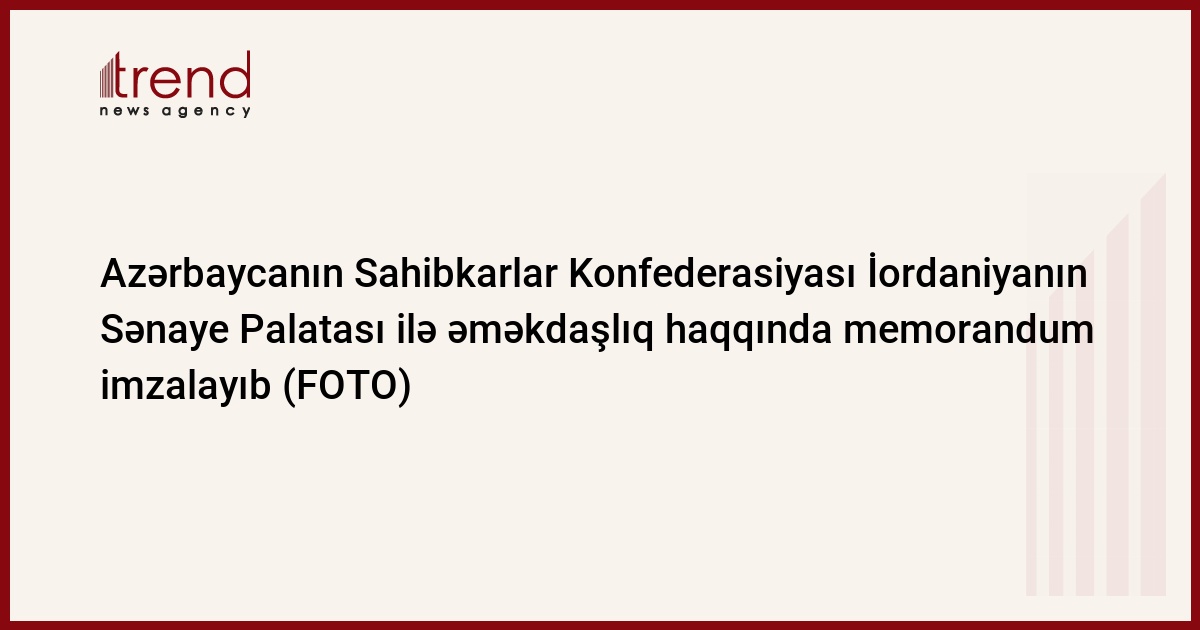 Çərşənbə axşamı Azərbaycan Sahibkarlar Konfederasiyası (ASK) və İordaniyanın Sənaye Palatası əməkdaşlıq haqqında memorandum imzalayıblar.