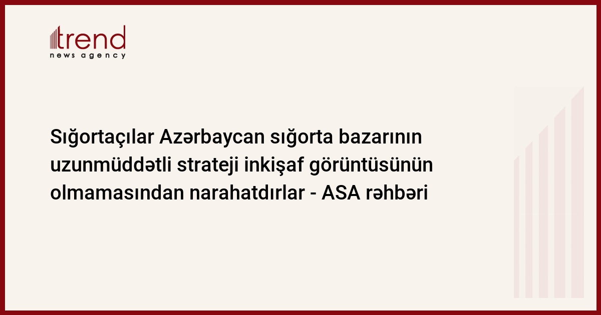 Onun sözlərinə görə, sığorta şirkətləri üçün digər problem sığorta biznesinin və Azərbaycanın sığorta bazarının uzunmüddətli strateji inkişaf görüntüsünün olmamasındadır.