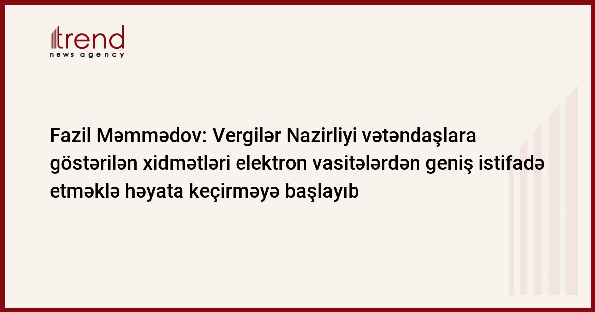 Azərbaycanın vergilər naziri Fazil Məmmədovun dövlət orqanlarının elektron xidmətlər göstərməsinin təşkili sahəsində bəzi tədbirlər haqqında Azərbaycan Respublikası Prezidentinin Fərmanına dair müsahibəsi