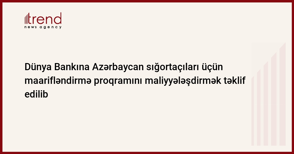 "Bu layihənin mahiyyəti sığortaçılar üçün təlim proqramının hazırlanmasıdır. Bu yaxınlarda bu məsələ ilə bağlı Dünya Bankının nümayəndələri ilə görüşlər keçirilib", - Əliyev bildirib.