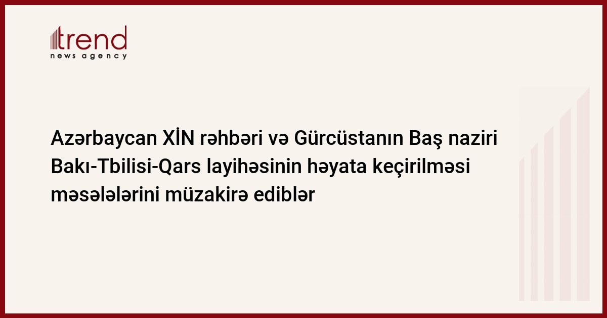 Azərbaycanın xarici işlər naziri Elmar Məmmədyarov və Gürcüstanın Baş naziri Nika Qilauri Bakı-Tbilisi-Qars marşrutu üzrə dəmiryol xəttinin açılışı layihəsinin həyata keçirilməsi məsələlərini müzakirə ediblər. Trend-in məlumatına görə, bu barədə jurnalistlərə Gürcüstan Baş nazirinin mətbuat katibi Nikoloz Mçedlişvili məlumat verib.
