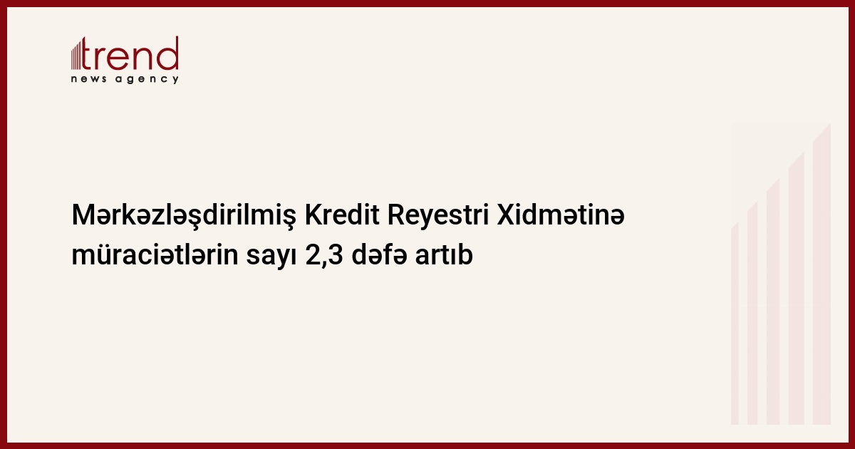 2011-ci ilin aprel ayında Azərbaycan Mərkəzi Bankı (AMB) yanında Mərkəzləşdirilmiş Kredit Reyestri Xidmətinə ölkə banklarından 45 156 müraciət daxil olub. Bu barədə bazar ertəsi Trend-ə xidmətdən məlumat verilib.
