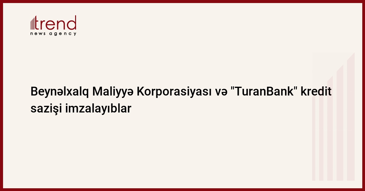 Beynəlxalq Maliyyə Korporasiyası və Azərbaycan bankı "TuranBank" çərşənbə axşamı mikro, kiçik və orta sahibkarlığın kreditləşdirilməsinin maliyyələşdirilməsi üçün 7 milyon dollar məbləğində maliyyələşdirmənin verilməsinə dair kredit sazişi imzalayıblar.