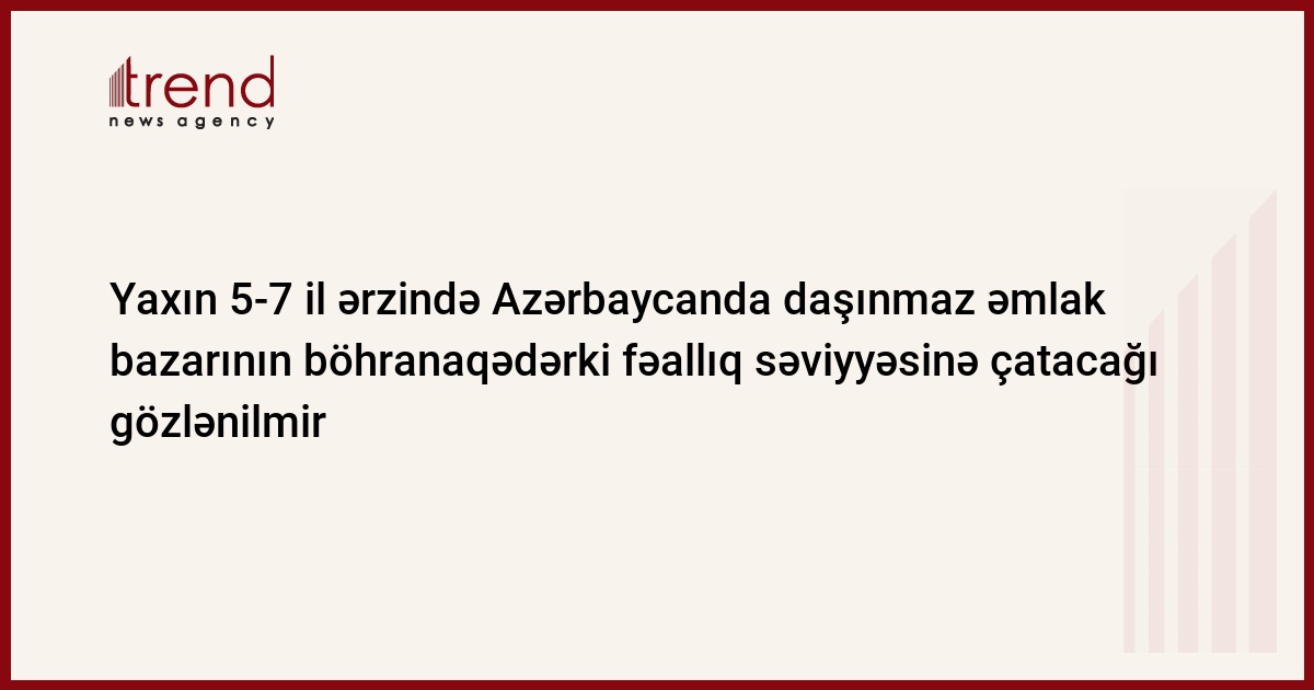 Yaxın 5-7 il ərzində Azərbaycanda daşınmaz əmlak bazarının böhran qədərki fəallıq səviyyəsinə çatacağı gözlənilmir. Bu barədə Trend-ə çərşənbə axşamı "MBA Group" konsaltinq şirkətinin baş direktoru Nüsrət İbrahimov deyib.