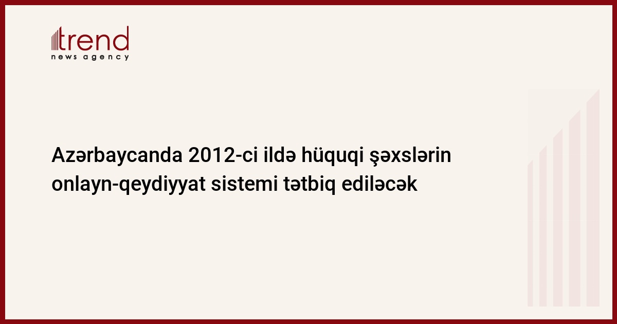 Azərbaycan Vergilər Nazirliyi 2012-ci ildə hüquqi şəxslərin onlayn-qeydiyyat sistemini tətbiq etməyi planlaşdırır. Trend-in məlumatına görə, bu barədə cümə axşamı vergilər nazirinin müavini Natiq Əmirov brifinqdə deyib.