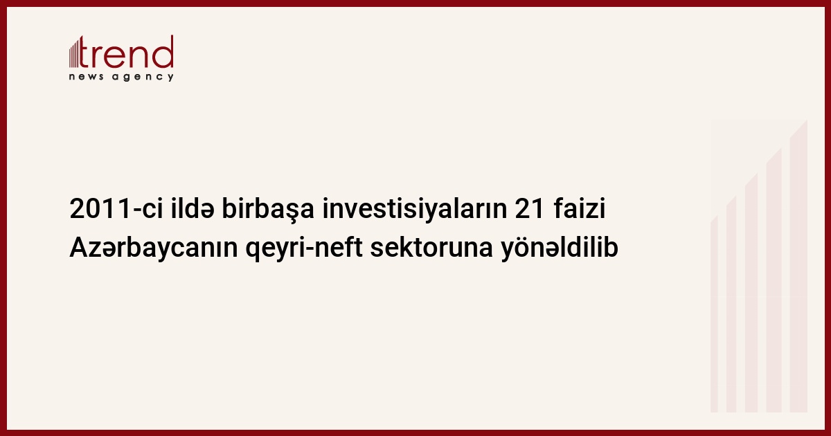 AMB-nin qiymətləndirmələrinə görə, qeyr-neft sektoruna cəlb edilən birbaşa investisiyaların həcmi 417,1 milyon dollar təşkil edir ki, bu da ölkəyə cəlb olunmuş birbaşa investisiyaların ümumi həcminin 20,9 faizini təşkil edir.
