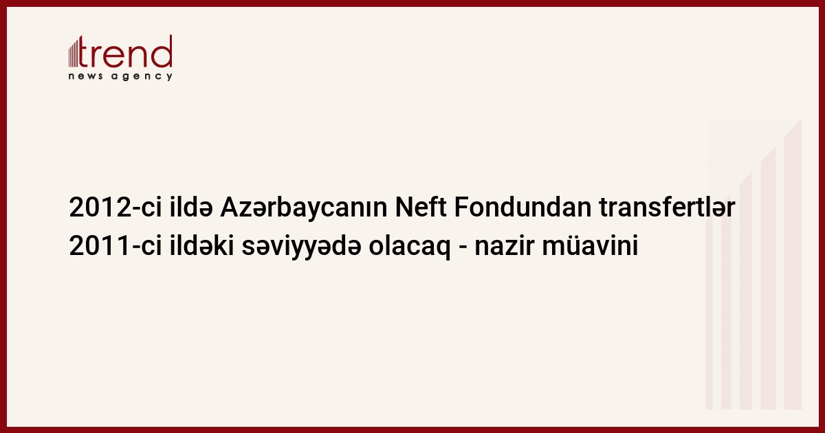 2012-ci ildə Azərbaycan Respublikası Dövlət Neft Fondundan (ARDNF) ölkə büdcəsinə transfertlərin həcmi cari ilin göstəricilərindən çox da fərqlənməyəcək. Bu barədə cümə günü Trend-ə maliyyə nazirinin müavini Azər Bayramov deyib.