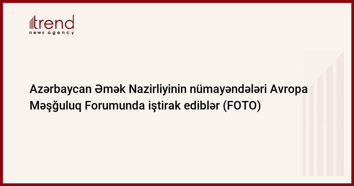 Azərbaycan Əmək və Əhalinin Sosial Müdafiəsi Nazirliyinin (ƏƏSMN) nümayəndə heyəti 21-23 noyabrda Belçikanın paytaxtı Brüsseldə keçirilən Avropa Məşğulluq Forumunda iştirak ediblər. Sərgi və konfransdan ibarət olan tədbir çərçivəsində geniş müzakirələr aparılıb, yeni əməkdaşlıq əlaqələri qurulub. Bu barədə Trend-ə nazirliyin İctimaiyyətlə əlaqələr şöbəsindən məlumat verilib.