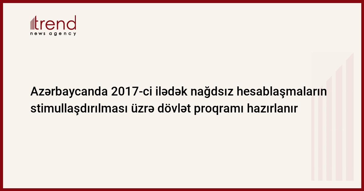 Azərbaycan Mərkəzi Bankı (AMB) 2012-2016-cı illəri əhatə edən nağdsız hesablaşmaların stimullaşdırılması üzrə dövlət proqramı hazırlayıb. Trend-in məlumatına görə, bu barədə cümə axşamı jurnalistlərə Mərkəzi Bank sədrinin birinci müavini Alim Quliyev bildirib.