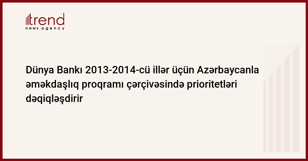 Dünya Bankı (DB) 2013-2014-cü illər üçün Azərbaycanla əməkdaşlıq proqramı çərçivəsində martın 5-6-da Bakıda keçiriləcək II yüksək səviyyəli iqtisadi siyasət forumu zamanı qəbul ediləcək tövsiyələrdən istifadə etməyi planlaşdırır.
