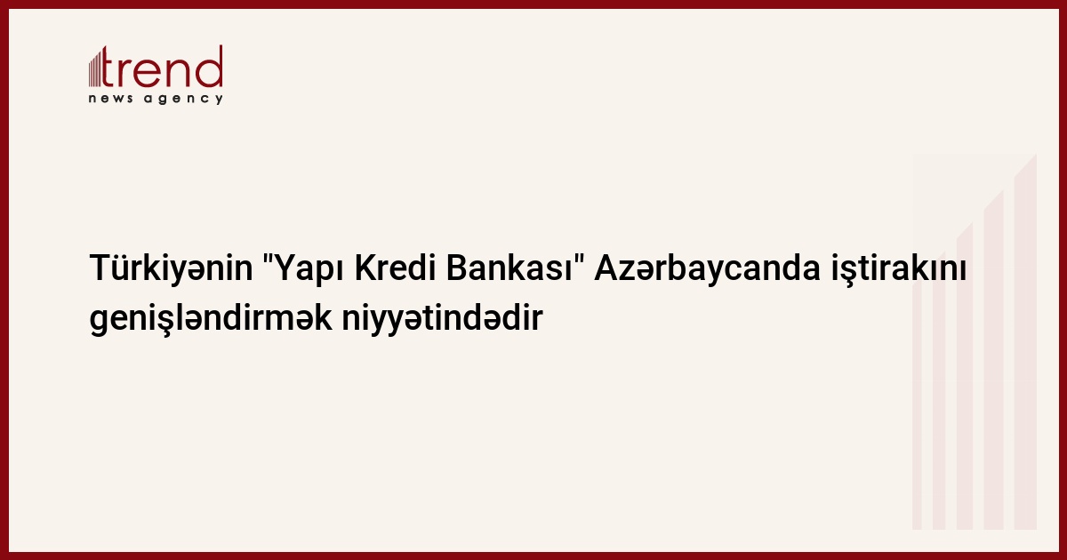Türkiyə bankı "Yapı Kredi Bankası" Azərbaycanın bank bazarında iştirakını genişləndirmək niyyətindədir. Bu barədə cümə günü Trend-ə bankdan məlumat veriblər.