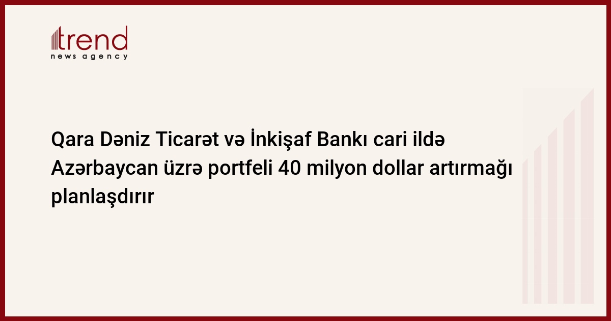 Qara Dəniz Ticarət və İnkişaf Bankının (QDTİB) Azərbaycanda fəal layihələrinin sayı 46-ya çatıb. Trend-in məlumatına görə, bu barədə çərşənbə axşamı bankın vitse-prezidenti Mustafa Boran Azərbaycan bankı "Unibank" ilə kredit sazişinin imzalanması mərasimində bildirib.