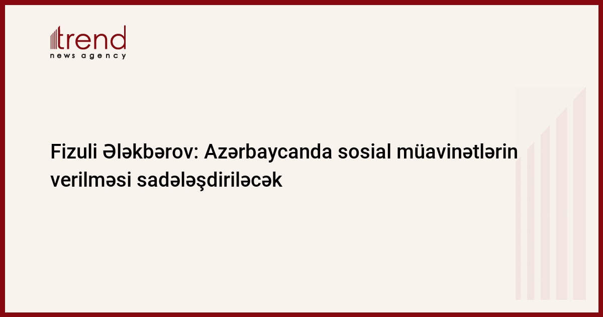 Azərbaycan Əmək və Əhalinin Sosial Müdafiəsi Nazirliyinin əsas məqsədlərindən biri sosial müavinətlərin verilməsi prosesinin sadələşdirilməsidir. Trend-in məlumatına görə, bu barədə cümə günü əmək və əhalinin sosial müdafiəsi naziri Fizuli Ələkbərov 2012-ci ilin birinci yarısının yekunlarına həsr olunmuş geniş kollegiya iclasında bildirib.