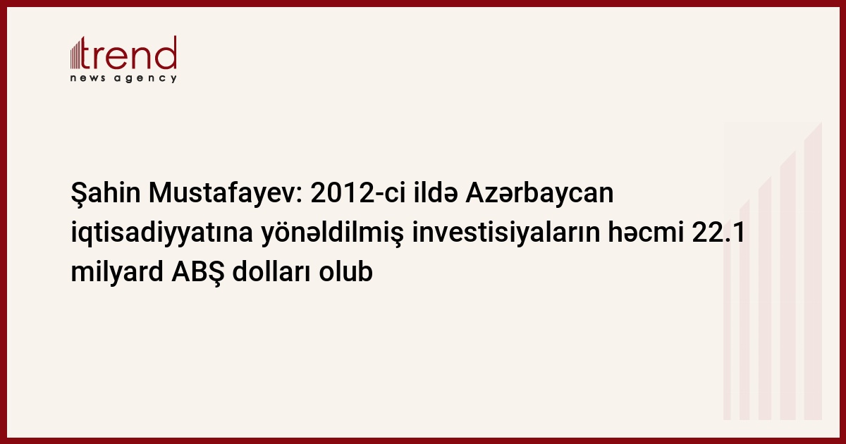 Əvvəlki illərdə olduğu kimi, 2012-ci ildə də qlobal iqtisadi böhran şəraitində Azərbaycan iqtisadiyyatı ümummilli lider Heydər Əliyevin müəyyənləşdirdiyi strategiya və Azərbaycan Respublikasının Prezidenti İlham Əliyevin uğurlu iqtisadi siyasəti nəticəsində mənfi xarici iqtisadi təsirlərə dayanıqlılıq nümayiş etdirmiş, iqtisadi artımın davamlılığı təmin edilmişdir. Trend-in məlumatına görə, bunu iqtisadi inkişaf naziri Şahin Mustafayev Azərbaycan Prezidenti İlham Əliyevin sədrliyi ilə Nazirlər Kabinetinin 2012-ci ilin sosial-iqtisadi inkişafının yekunları və 2013-cü ildə qarşıda duran vəzifələrə həsr olunmuş iclasında çıxışı zamanı deyib.