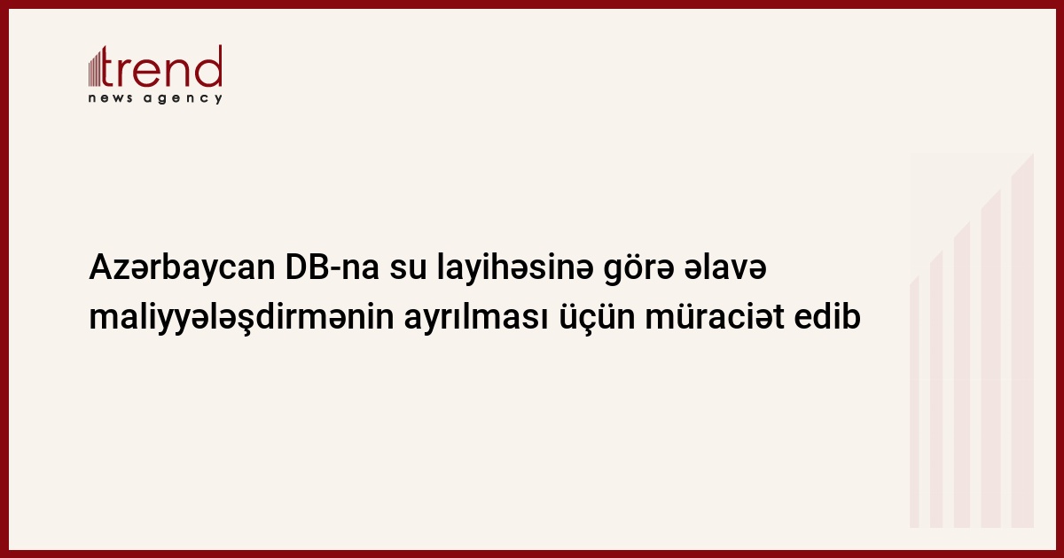 Bu işlər DB-nin Şamaxı, Qəbələ, Saatlı və Sabirabad rayonlarının su təchizatı və kanalizasiya sisteminin tam bərpasını nəzərdə tutan ilk su layihəsi çərçivəsində nəzərdə tutulub. Layihənin dizaynının dəyişməsi nəticəsində sonuncu üç rayon üçün əlavə resurslara tələbat aşkar edilib və bununla əlaqədar bankın əlavə vəsaitlərin cəlb olunması nəzərdə tutulur.