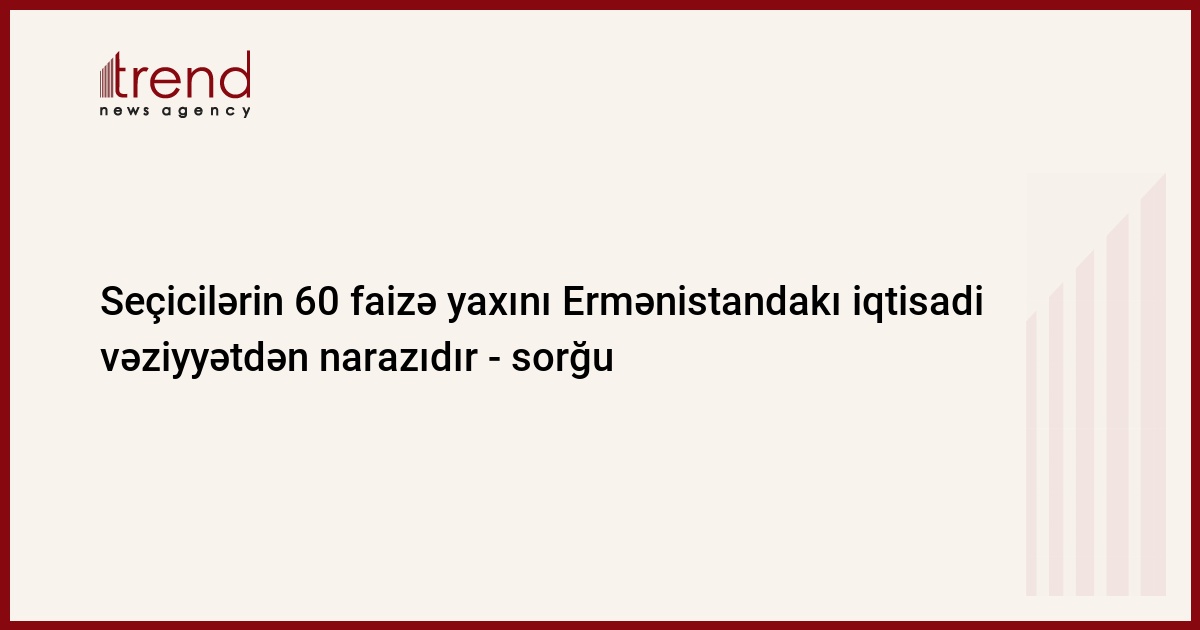 "Gallup International Association" təşkilatının apardığı rəy sorğusunun nəticələrinə görə, seçicilərin 35 faizi Ermənistandakı iqtisadi vəziyyəti "pis", 24 faizi isə "çox pis" kimi qiymətləndirir. Bu barədə Trend Ermənistan KİV-ə istinadən məlumat verir.