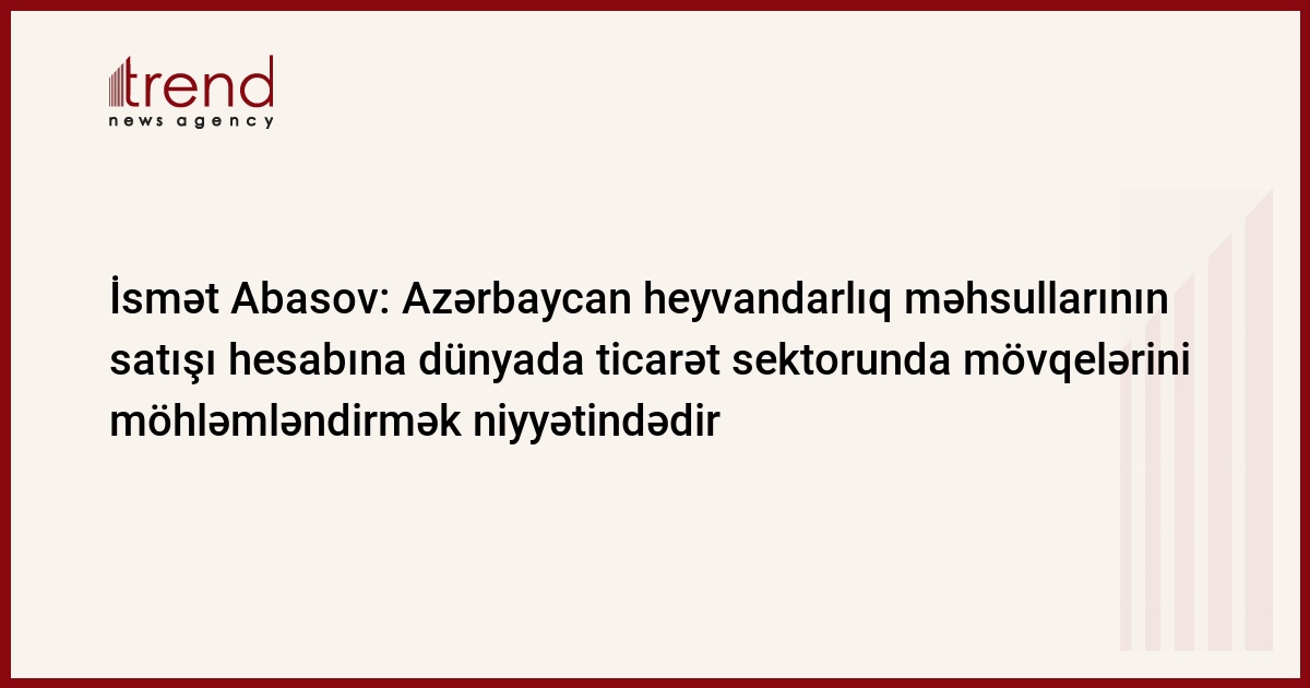 "Bu meyarların həyata keçirilməsi üçün müasir idarəetmə sistemi lazımdır. Bu sistem ölkənin ərzaq təhlükəsizliyini gücləndirəcək və heyvandarlıq məhsullarının satışı hesabına dünyada ticarət sektorunda möhkəmlənməsinə gətirəcək",- deyə Abasov qeyd edib.