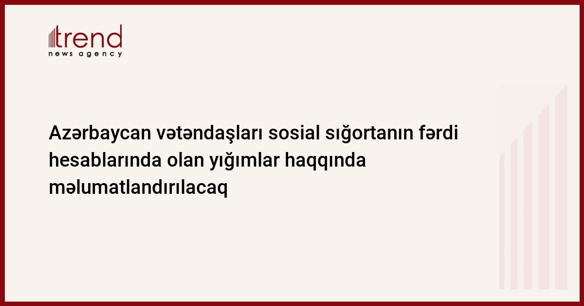 Dövlət Sosial Müdafiə Fondu (DSMF) sosial sığorta sistemində fərdi hesabları olan bütün vətəndaşlara bu hesablardakı vəsaitlər haqqında məlumatla birlikdə bildiriş göndərəcək.