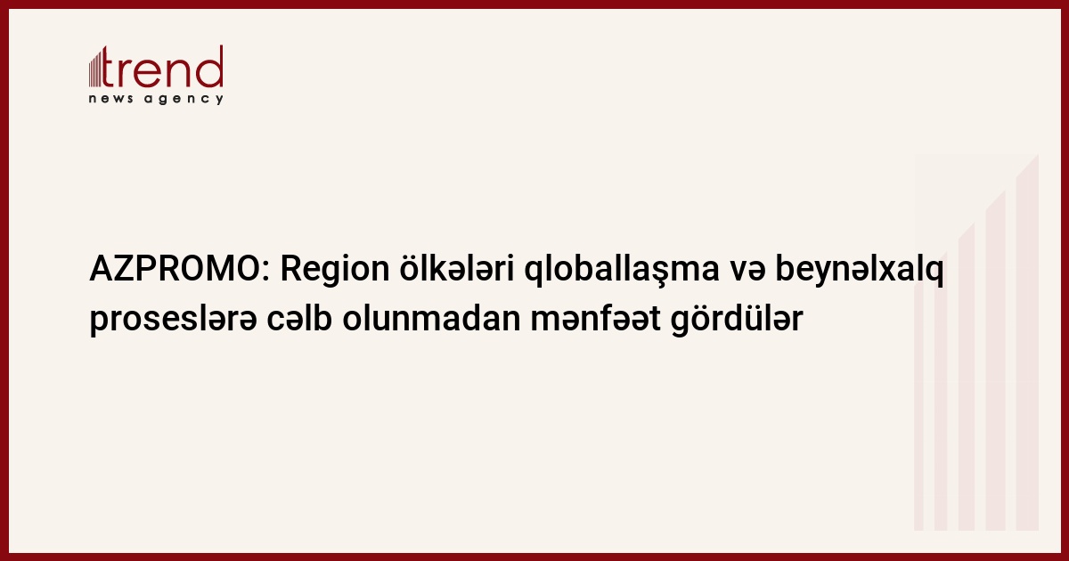 Region ölkələri qloballaşma və beynəlxalq proseslərə cəlb olunmanın verdiyi mənfəəti gördülər. Trend-in məlumatına görə, bunu cümə axşamı Azərbaycanda İxracın və İnvestisiyaların Təşviqi Fondunun (AZPROMO) rəhbəri Rüfət Məmmədov "Qafqaz və Mərkəzi Asiya regionunda beynəlxalq ticarət hüququ: regional inteqrasiya və qloballaşma arasında" beynəlxalq konfransın açılışında çıxış edərkən deyib.