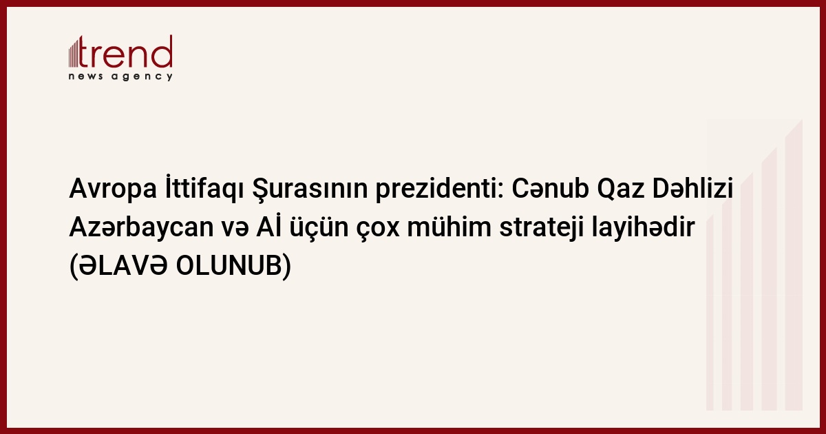 Van Rompuy bildirib: "Bizim müzakirə etdiyimiz məsələlər sırasında energetika da var idi. Mən hər iki tərəf üçün strateji əhəmiyyət kəsb edən Cənub Qaz Dəhlizi layihəsi üzrə əldə olunan nəzərəçarpan inkişaf barədə öz məmnunluğumu bölüşdüm".