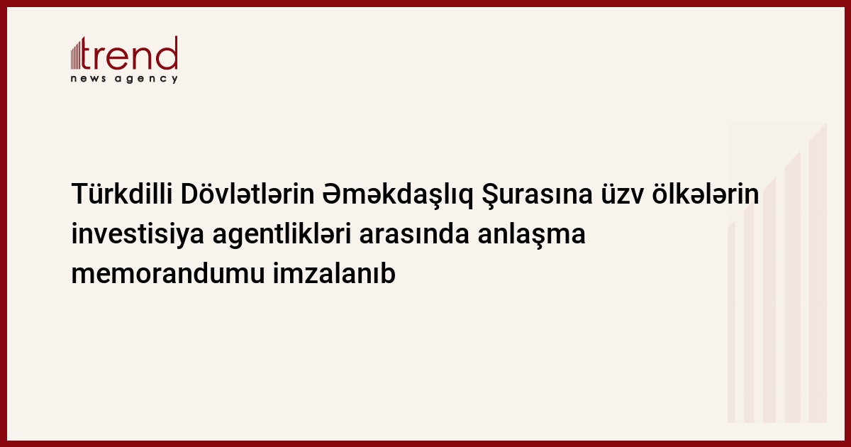 Görüş çərçivəsində Türkdilli Dövlətlərin Əməkdaşlıq Şurasına üzv ölkələrin investisiya agentlikləri arasında Anlaşma Memorandumu imzalanmışdır. Azərbaycan tərəfdən Memorandumu Azərbaycanda İxracın və İnvestisiyaların Təşviqi Fondunun (AZPROMO) rəhbəri Rüfət Məmmədov imzalayıb.