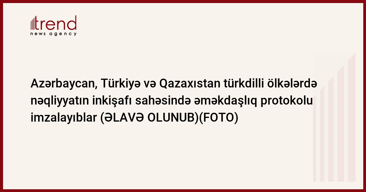 Azərbaycan, Türkiyə və Qazaxıstanın Nəqiliyyat nazirlikləri çərşənbə günü Bakıda türkdilli ölkələrdə nəqliyyat sahəsinin inkişafı üzrə birgə əməkdaşlığa dair protokol imzalıyıblar.