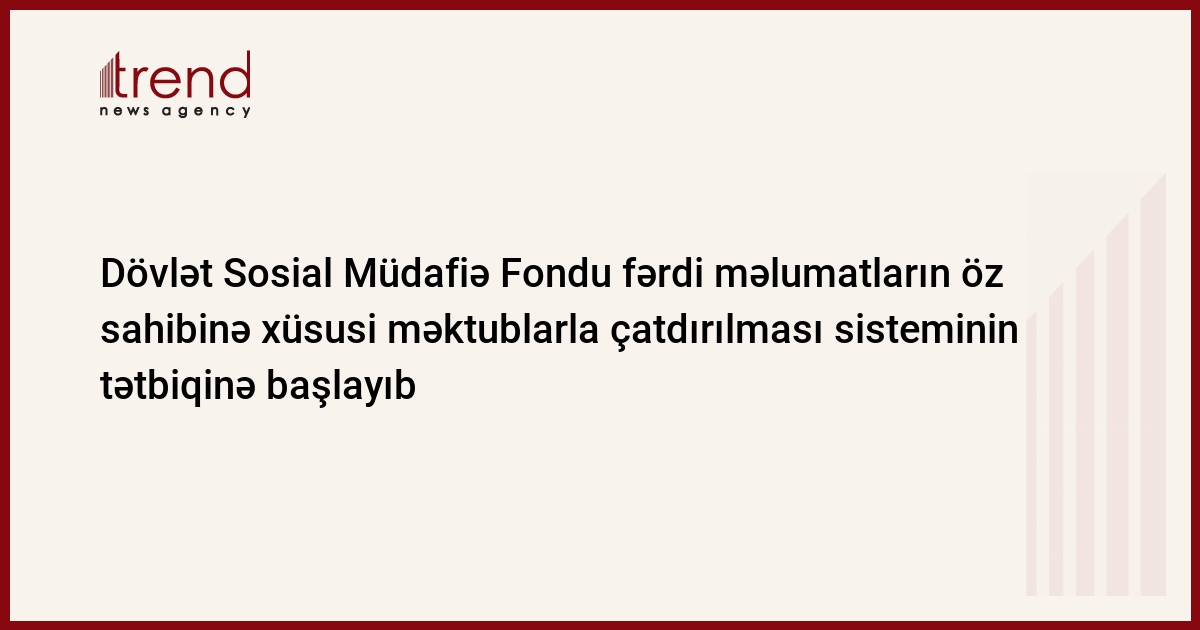 Dövlət Sosial Müdafiə Fondu hər bir şəxs üzrə fərdi məlumatların öz sahibinə xüsusi məktublarla çatdırılması sisteminin tətbiqinə başlayıb.