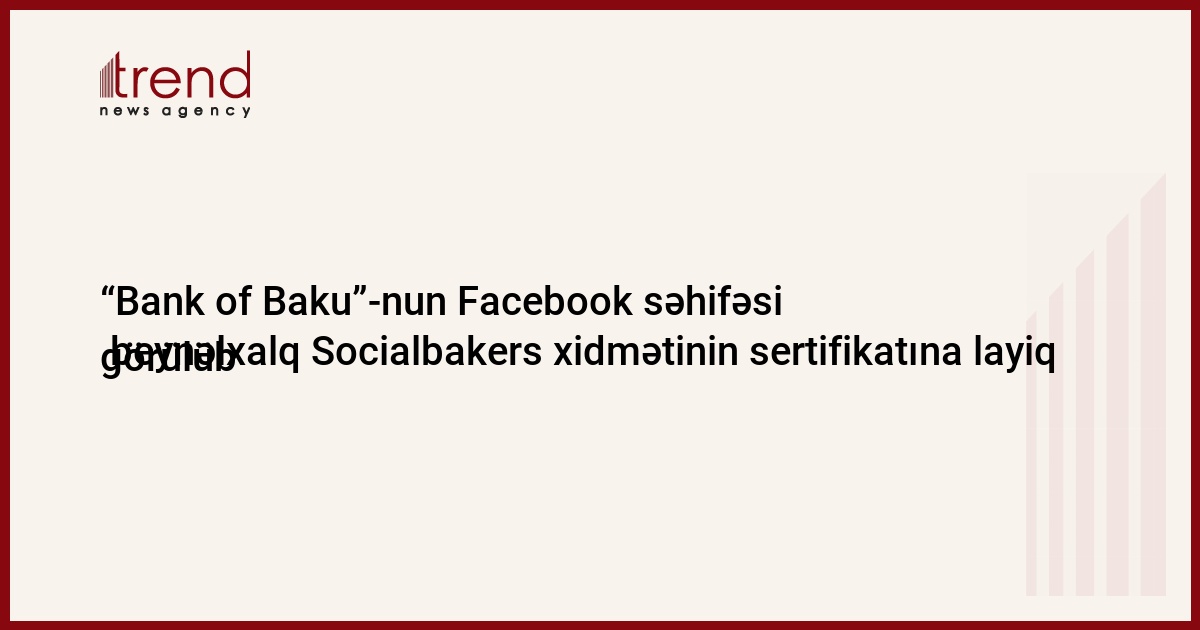 Bankdan Trend-ə daxil olan məlumatda bildirilir ki, təqdim edilmiş xüsusi sertifikatda "Bank of Baku"-nun sosial şəbəkədə müştəri xidmətlərinə görə bu sənədə layiq görüldüyü qeyd edilib.
