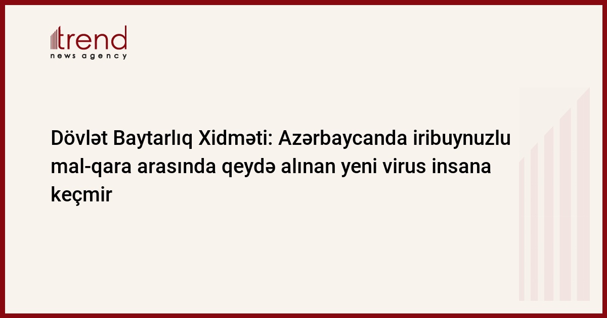 Azərbaycan Dövlət Baytarlıq Xidməti fermerləri narahat olmamağa və ölkənin bir sıra rayonlarında iribuynuzlu mal-qara arasında yayılan yeni virusla əlaqədar təşvişə düşməməyə çağırır.