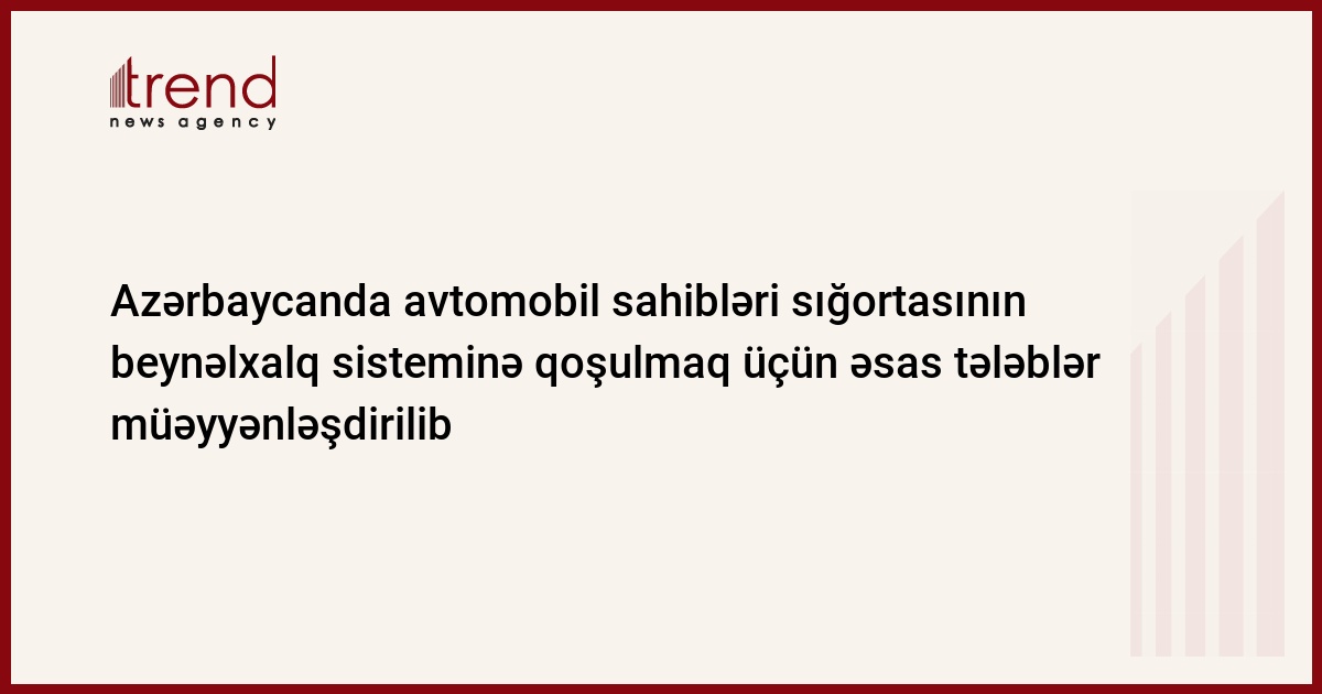 İcbarı Sığorta Bürosu "Yaşıl kart" nəqliyyat vasitələrinin sahiblərinin vətəndaş məsuliyyəti sığortası beynəlxalq sisteminə qoşulmaq istəyənlər üçün əsas tələbləri müəyyənləşdirib. Bu barədə bürodan Trend-ə daxil olan məlumatda bildirilir.