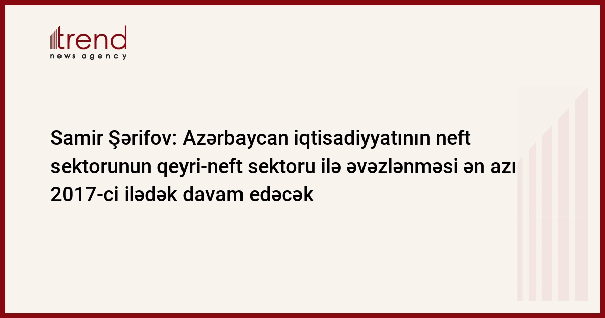 Azərbaycan iqtisadiyyatının neft sektorunun qeyri-neft sektoru ilə əvəzlənməsi tendensiyası ən azı 2017-ci ilədək davam edəcək. Trend-in məlumatına görə, bu barədə çərşənbə axşamı maliyyə naziri Samir Şərifov Milli Məclisdə 2014-cü ilin büdcə zərfinin müzakirəsində çıxışı zamanı deyib.