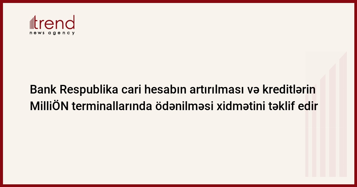 İndi Bank Respublika müştəriləri vəsaitlərin cari hesablarına yatırılması əməliyyatlarını MilliÖN terminalları vasitəsilə həyata keçirə bilərlər.