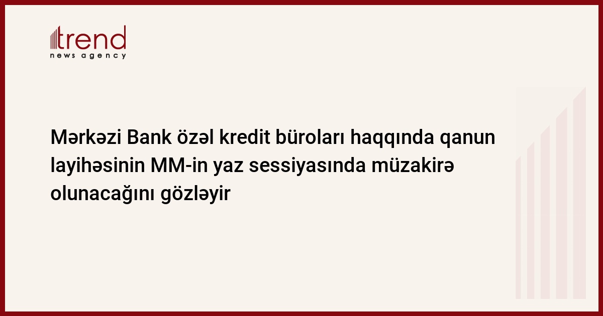 Özəl kredit bürolarının fəaliyyətini tənzimləyəcək qanun layihəsi artıq növbəti yaz sessiyasında Milli Məclisdə müzakirəyə çıxarıla bilər. Trend-in məlumatına görə, bu barədə Azərbaycan Mərkəzi Bankının (AMB) baş direktoru Rəşad Orucov bildirib.