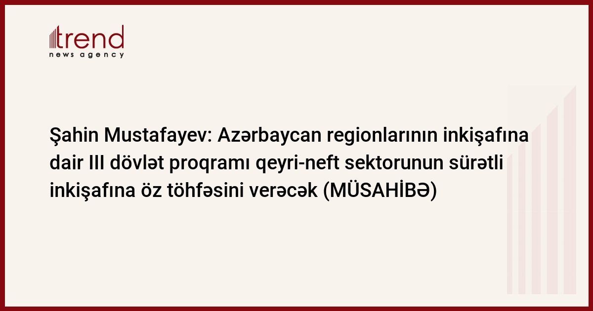 İqtisadiyyat və sənaye naziri Şahin Mustafayevin Trend-ə müsahibəsi