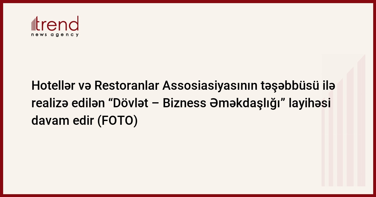 Assosiasiyanın Layihə Rəhbəri Orxan Məmmədov qeyd edir ki, ölkənin hotelçilik və restoran biznesi nümayəndələrinin təkliflərini nəzərə alaraq Hotellər və Restoranlar Assosiasiyasının təşəbbüsü ilə "Dövlət - Bizness Əməkdaşlığı" Layihəsinə (State-Business Cooperation Project) 2013-cü ildə start verilmişdir. Layihə çərçivəsində ölkə hotelçilərinin və restoran biznesi nümayəndələrinin dövlət qurumları ilə görüşləri, qonaqpərvərlik sənayesində dövlətin tətbiq etdiyi müvafiq qanunların və qaydaların açıqlanması, ölkədə biznes mühütünün dahada yaxşılaşdırılmasına yönəlmiş proseslərin və biznes üçün önəmli olan sualların müzakirəsi nəzərdə tutulur. Layihənin əsas məqsədi qonaqpərvərlik sənayesinin aparıcı qüvvəsi olan hotelçilik və içtimai iaşə sektoru və müvafiq dövlət qurumları arasında dialoq yaradaraq iqtisadiyyatın bu sahəsinin inkişafına yardımçı olmaqdır.