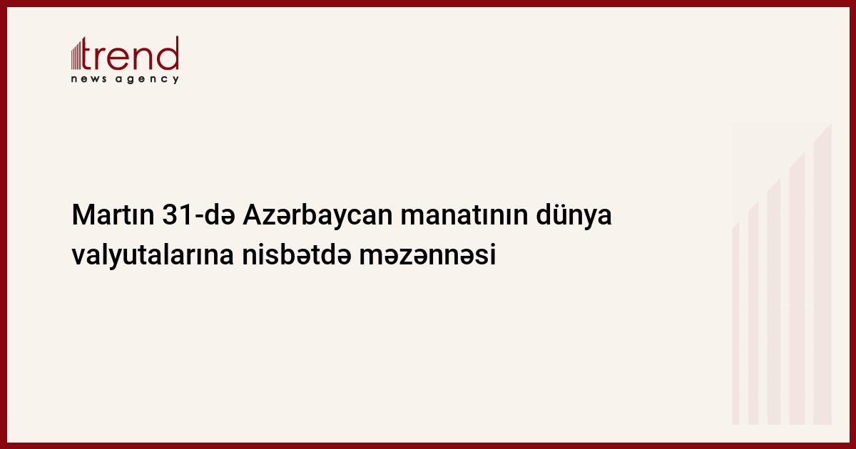 Azərbaycan Mərkəzi Bankının məlumatına əsasən, manatın dünya valyutaları və qiymətli metallara nisbətdə bazar ertəsinə olan məzənnəsi: