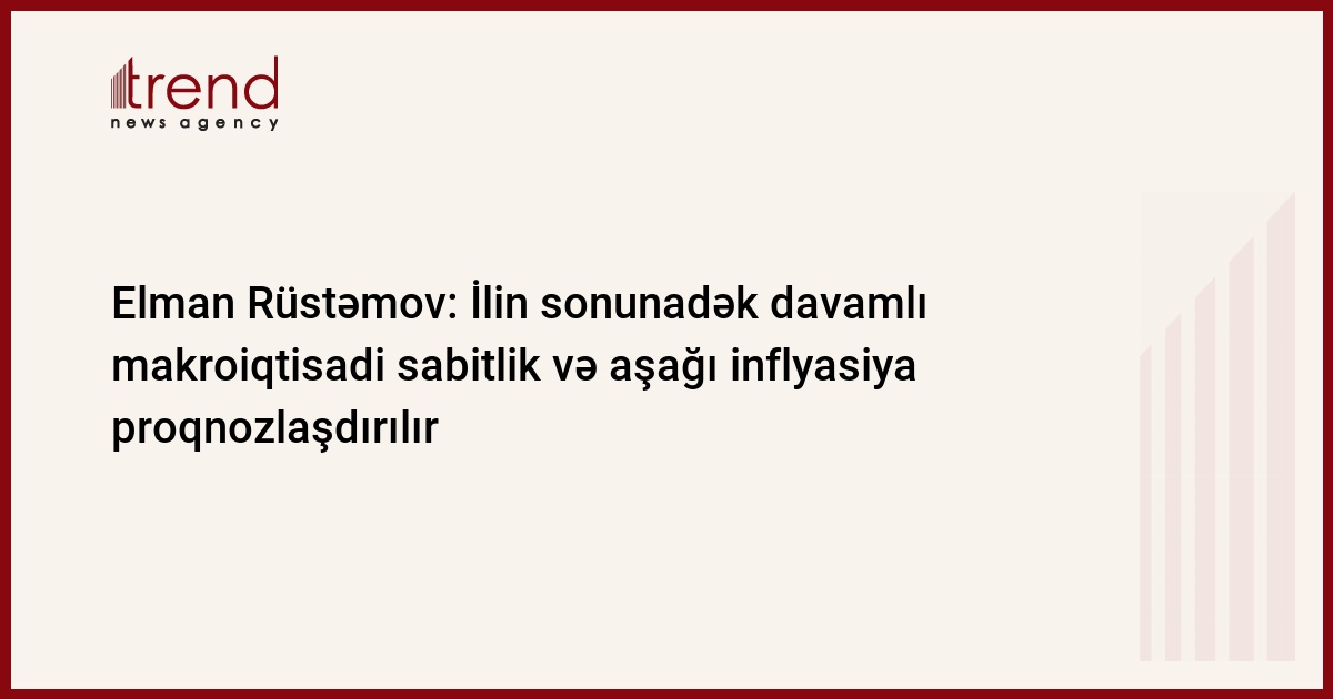 Mərkəzi Bank sədrinin sözlərinə görə, Azərbaycanda ilin sonuna kimi davamlı makroiqtisadi sabitlik və aşağı inflyasiya proqnozlaşdırılır: "Kreditlər üzrə faiz dərəcələri aşağı salınmalıdır. Faiz dərəcələri elə səviyyəyə salınmalıdır ki, həm əhali, həm də biznes üçün səmərəli olsun".