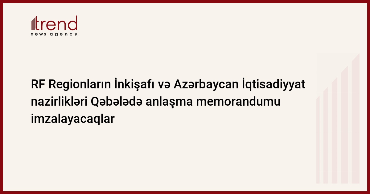 V Azərbaycan-Rusiya regionlararası forumunun gedişində RF Regionların İnkişafı Nazirliyi və Azərbaycanın İqtisadiyyat və Sənaye Nazirliyi arasında qarşılıqlı anlaşma memorandumu imzalanacaq. Trend-in məlumatına görə, bu barədə çərşənbə günü "Rossiyskaya qazeta"ya müsahibəsində RF-nin regionların inkişafı naziri İqor Slyunyayev bildirib.
