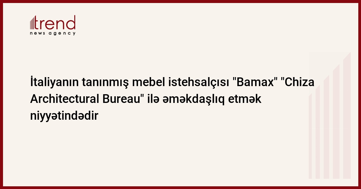 İtaliyanın tanınmış klassik və modern üslublu mebel istehsalçısı olan "Bamax" şirkətinin prezidenti Massimo Baron Azərbaycanın ilk və yeganə arxitektura bürosu olan "Chiza Architectural Bureau"nun ofisində olub.
