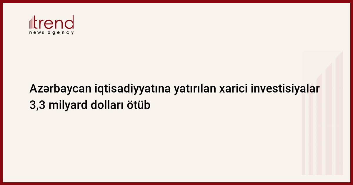 2014-cü ilin yanvar-iyul aylarında Azərbaycan iqtisadiyyatına qoyulan xarici investisiyaların ümumi həcmi 2646,2 milyon manat təşkil edib ki, bu da ötən ilin müvafiq dövrü ilə müqayisədə 18,9 faiz çoxdur. Trend-in məlumatına görə, bu barədə Dövlət Statistika Komitəsinin hesabatında deyilir.
