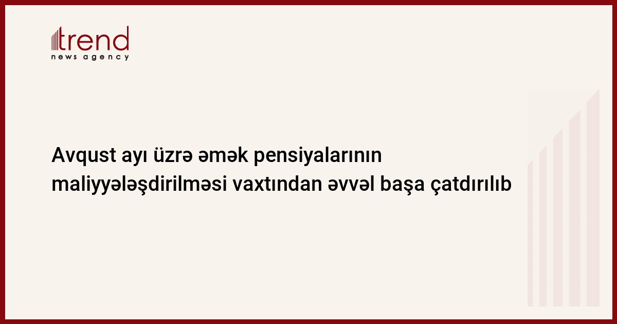 Azərbaycan Respublikası Dövlət Sosial Müdafiə Fondu (DSMF) 2014-cü ilin avqust ayı üzrə əmək pensiyalarının maliyyələşdirilməsini vaxtından əvvəl başa çatdırıb. DSMF-nin mərkəzi xəzinə hesabından pensiyaların maliyyələşdirilməsi üçün tələb olunan vəsaitin yerli orqanların hesablarına köcürülməsi avqust ayının 21-i tarixinə tam yekunlaşıb və pensiyaların vətəndaşların şəxsi hesablarına köçürülməsi təmin olunub. Bu barədə Trend DSMF-nin İctimaiyyətlə əlaqələr sektoruna istinadən məlumat verib.