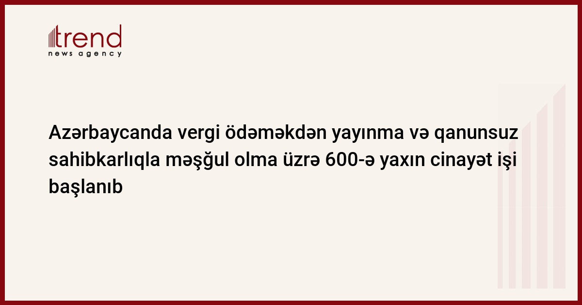 2014-cü ilin 9 ayı ərzində Vergilər Nazirliyi yanında Vergi Cinayətlərinin İbtidai Araşdırılması Departamentində vergi ödəməkdən yayınma və qanunsuz sahibkarlıq fəaliyyəti ilə məşğul olma faktları üzrə cəmi 593 cinayət işi başlanıb.