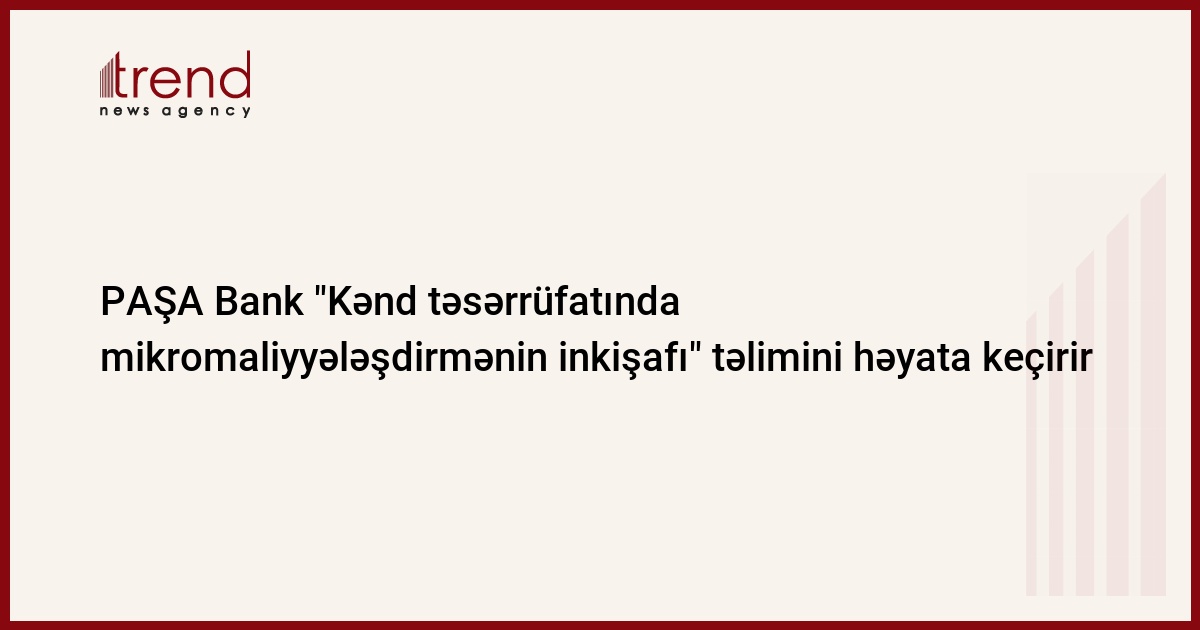 Mikromaliyyələşdirmə sektoruna texniki dəstək proqramının çərçivəsində ölkənin ən böyük banklarından biri olan PAŞA Bank sahibkarlar arasında "Kənd təsərrüfatında mikromaliyyələşdirmənin inkişafı" adlı təlim keçirir. Tədbirin təşkilat dəstəyini Azərbaycanın Mikromaliyyələşdirmə Assosiasiyası göstərir.