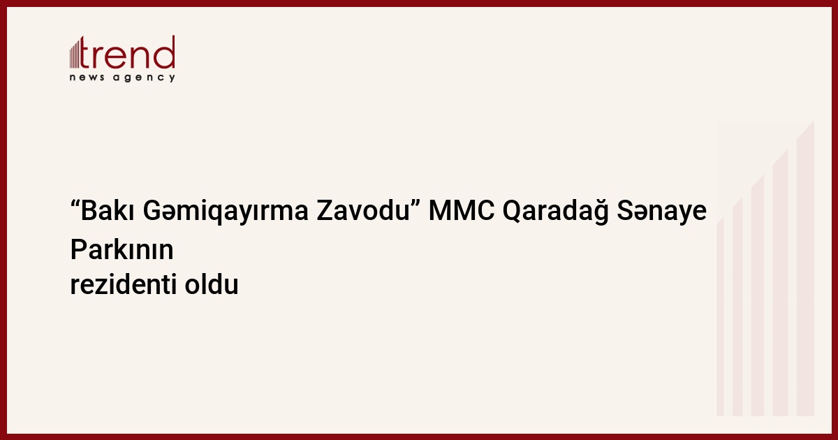 "Bakı Gəmiqayırma Zavodu" MMC-yə Qaradağ Sənaye Parkının ilk rezidenti statusu verilib. Bu barədə İqtisadiyyat və Sənaye Nazirliyindən (İSN) Trend-ə verilən məlumatda bildirilir.