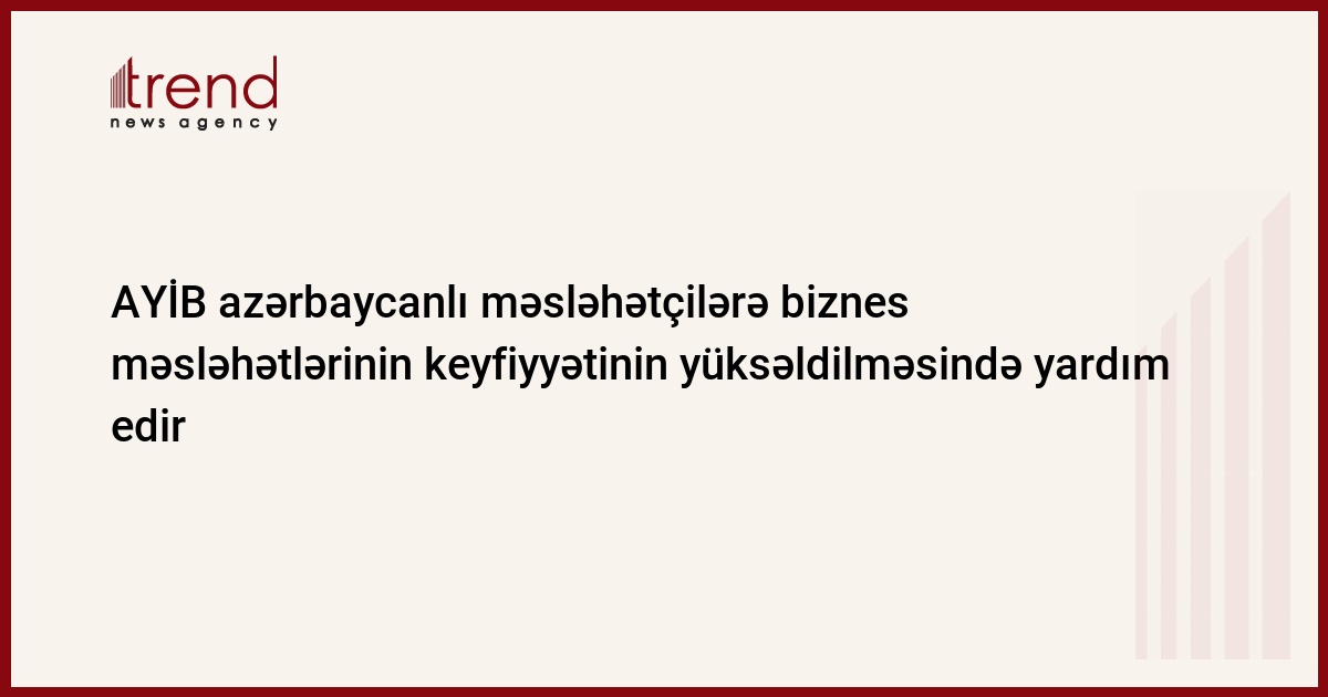 Azərbaycandan olan on beş konsaltinq şirkəti 7-9 dekabr 2015-ci il tarixlərində Avropa Yenidənqurma və İnkişaf Bankı (AYİB) tərəfindən təşkil olunan və Avropa Birliyi tərəfindən maliyyələşdirilən üç günlük seminarda iştirak edəcəklər. AYİB Bakı nümayəndəliyindən Trend-ə verilən məlumata görə, seminar Azərbaycanın yerli məsləhətçiləri tərəfindən yerli kiçik və orta müəssisələr üçün təmin edilən biznes məsləhət xidmətlərinin keyfiyyətinin yaxşılaşdırılması məqsədilə məsləhətçilərin bacarıqlarının inkişaf etdirilməsi üçün keçirilir. Bu seminar AYİB ilə birlikdə, Sankt Peterburqdan olan təcrübəli təlimçi Vladimir Çernyavski tərəfindən keçiriləcək.